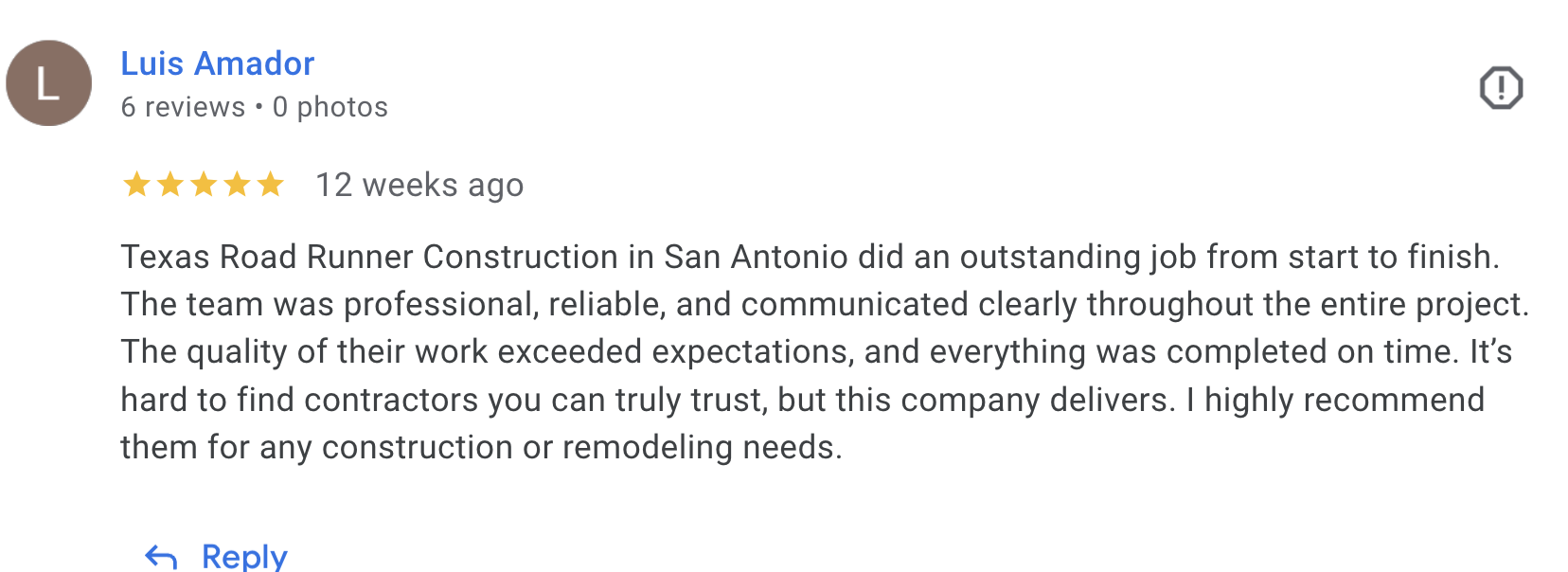 Texas Roadrunner Construction is about building relationships and trust in our community. We’re eager to hear your vision and help turn it into reality.