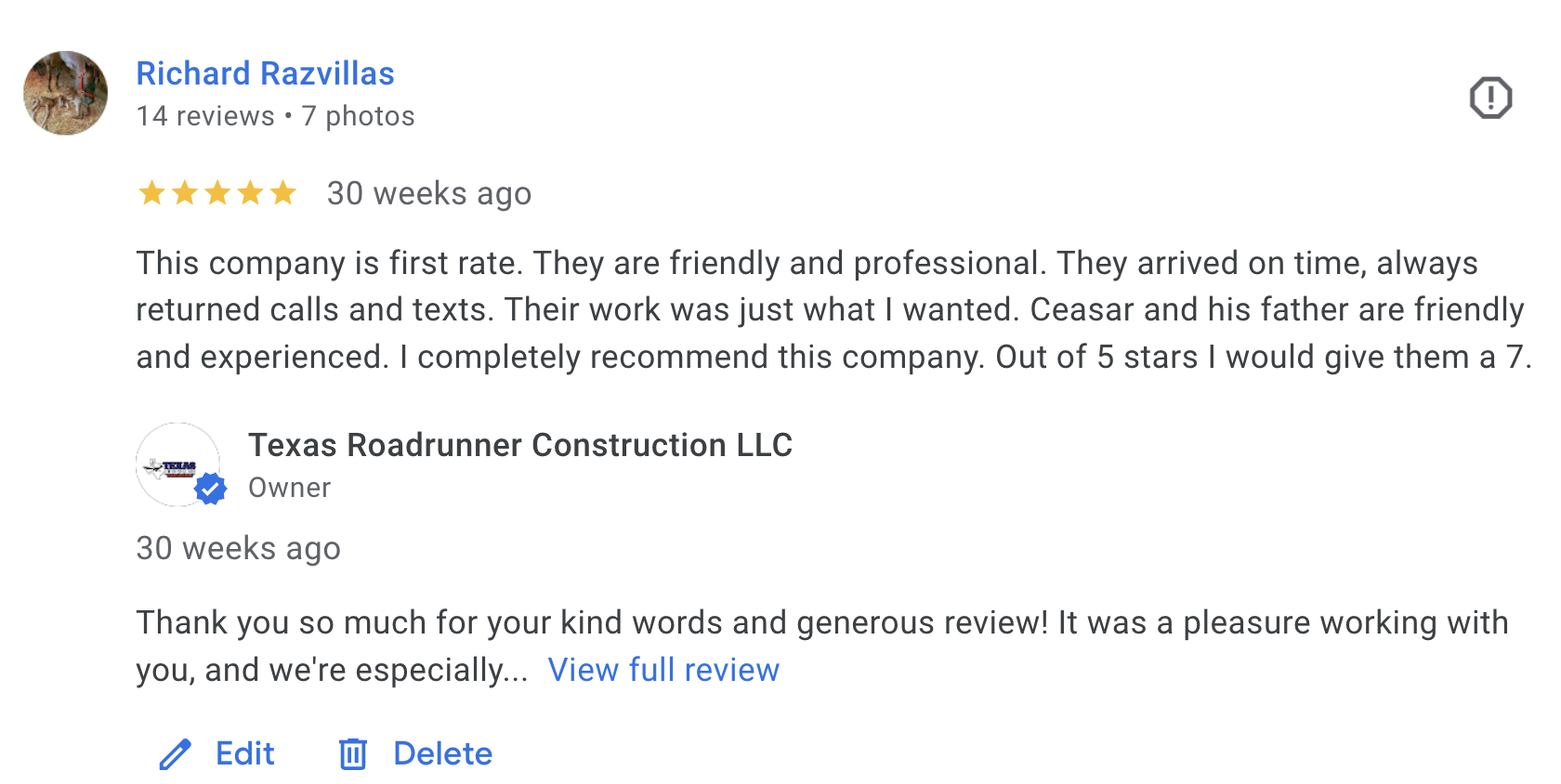 Thank you for considering TEXAS Roadrunner Construction. We look forward to serving you!